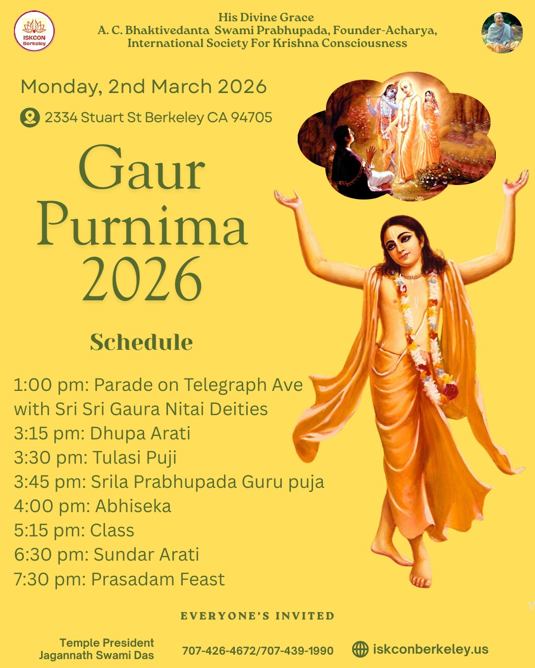 1:00 pm: Parade on Telegraph Ave with Sri Sri Gaura Nitai Deities